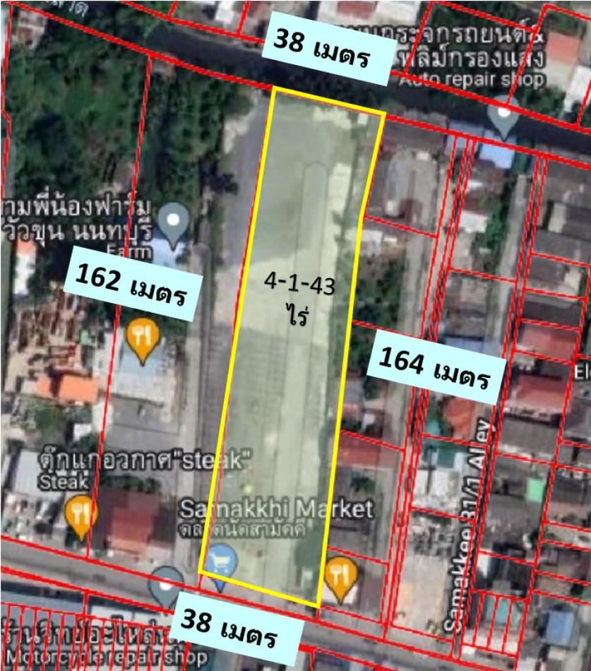 ขาย ที่ดิน ถ. สามัคคี นนทบุรี 4 ไร่ 1 งาน 43 ตรว หน้ากว้าง 38 ม. ติดถนน ถมแล้ว |