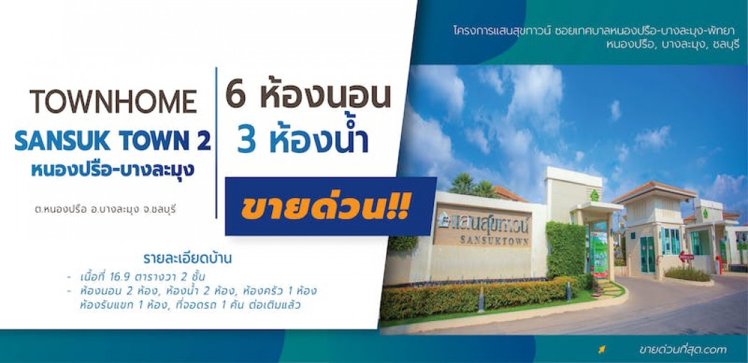 ขายทาวน์เฮาส์ โครงการแสนสุขทาวน์ 2 หนองปรือ-บางละมุง พื้นที่ 16.9 ตร.ม.