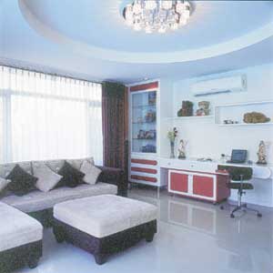จากแนวคิดที่อิสระของงานออกแบบ ส่งผลให้แนวทางการตกแต่งบ้านของคนรุ่นใหม่ไม่ยึดติดกับสไตล์ใดอย่างชัดเจน แต่จะเน้นการผสมผสานให้เกิดบรรยากาศที่สวยงามแบบเฉพาะตัว เช่นเดียวกับบ้านหลังนี้ บริเวณชั้นล่างออกแบบให้เป็นส่วนที่สมาชิกในบ้านมาทำกิจกรรมต่าง ๆ ร่วมกัน และเนื่องจากแต่ละส่วนมีประตูกั้นอย่างเป็นสัดส่วน ทำให้เจ้าของบ้านสามารถตกแต่งแต่ละห้องในสไตล์ที่แตกต่างกัน เห็นได้จากสไตล์โมเดิร์นของห้องพักผ่อนที่แลดูโปร่งเบาสบายตา ตกแต่งด้วยโครงสีขาว และแทรกด้วยการแต่งแถบสีแดง เพื่อให้ดูสดใสขึ้น ซึ่งการตกแต่งด้วยโทนสีขาวนี้ยังนำไปใช้กับห้องรับประทานอาหารที่ต้องการความหรูหราเวลาเลี้ยงต้อนรับแขก ส่วนห้องนอนสไตล์โมเดิร์นเลือกใช้โทนสีฟ้า เพื่อสื่อถึงความทันสมัยเรียบง่าย โดยลดทอนลวดลายของผ้าม่านและส่วนกรุผนังให้แลดูสะอาดตาและง่ายต่อการดูแลรักษา หากใครที่ต้องการให้บ้านมีหลากหลายบรรยากาศ ก็สามารถนำแนวทางการแต่งบ้านแบบนี้ไปประยุกต์ใช้ดูบ้างก็ได้. (ออกแบบตกแต่งภายใน : บริษัท แกรนด์ เฮ้าส์ เฟอร์นิเจอร์ จำกัด) |